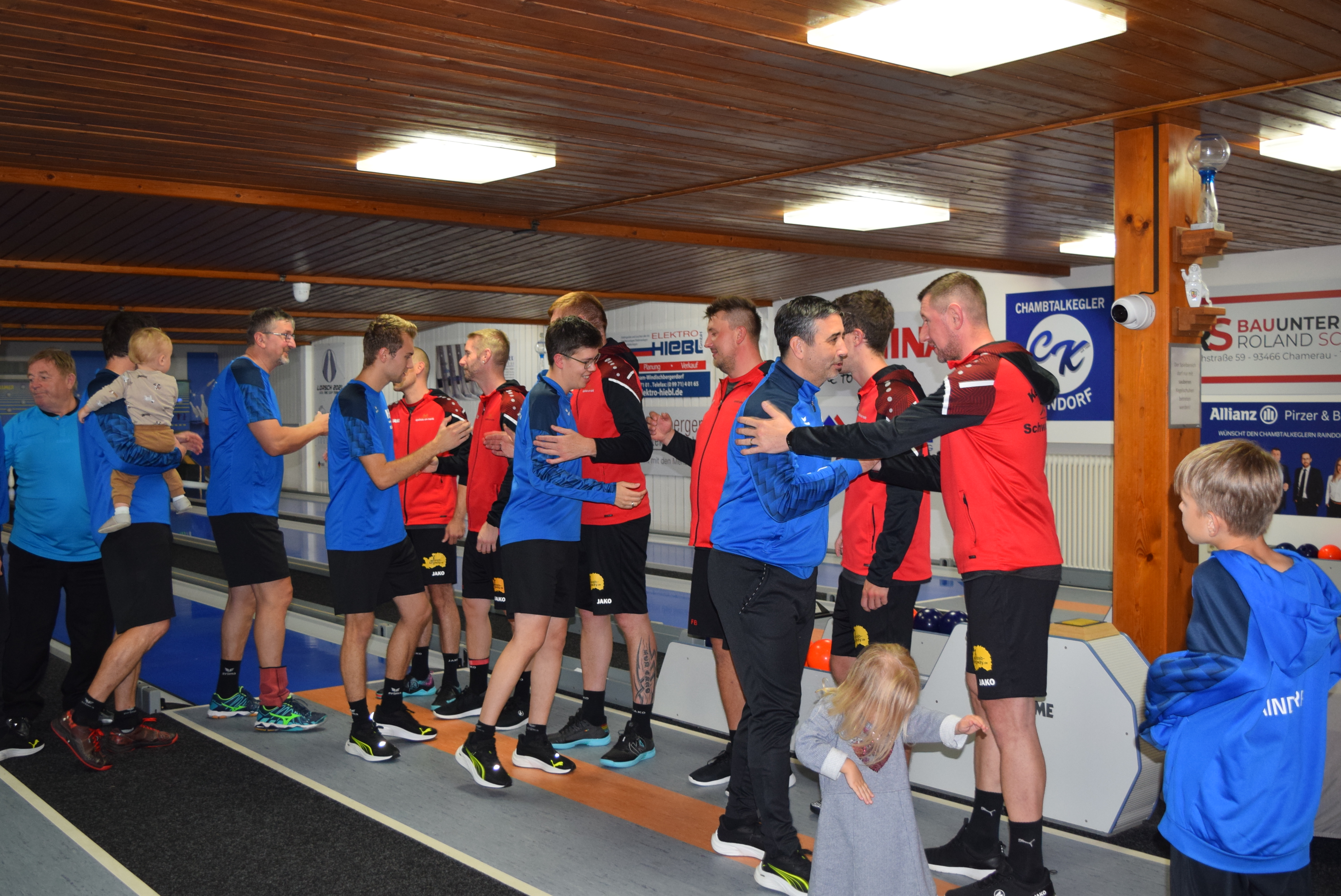 Gedämpfte Stimmung bei den Gastgebern, die jedoch mit Jürgen Pointinger und Taras Elsinger zwei Ausnahmeathleten ins Rennen schickten. Stephan Drexler und Timo Alander hatten die Aufgabe den Vorsprung zu verteidigen. Drexler bemühte sich gegen die strammen Anwürfe des Raindorfers um nicht unter die Räder zu kommen, bekam jedoch keine Chance auf einen Satzpunkt und verlor sein Spiel mit 0:4 (598:661). Alander, noch im ersten Satz erfolglos, steigerte sich von Bahn zu Bahn und wehrte sich erfolgreich zum 3:1 (632:651). Äußerst spannend die letzten Würfe im Chambtaler Hof, Elsinger mit drei Handneunern setzte Alander massiv unter Druck, der dem jedoch Stand hielt und mit drei Kegel Vorsprung den dritten Satz ins Ziel rettete.